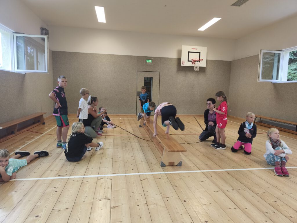 Zu den Highlights gehörten für die Kinder, das Zielschießen mit Socken. Auch das Wandern als „Raupe“ sorgte für viele Lacher und erforderte viel Teamgeist. Beim Ping-Pong Dosenwerfen war viel Geschick nötig. Die Hockwende über die Bank und die Sitzhocke an der Wand forderten Kraft und Ausdauer. Bei der Hulla Hoop Kette mussten die Teams einen Reifen im Kreis weitergeben, ohne die Hände loszulassen. Auch alle anderen Stationen bereiteten den Kindern viel Freude und jeder strengte sich sehr an.