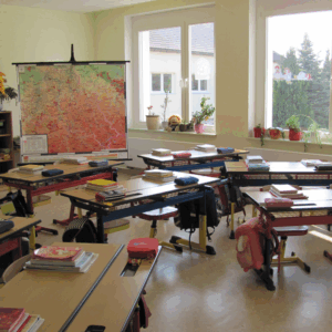 Es erfolgt der Umbau der Wohnungen in den oberen Etagen zu Klassenzimmern. Zudem wird eine Turnhalle errichtet und eine Schulwerkstatt eröffnet. Die Umsetzung erfolgte durch große freiwillige Arbeit der Lehrer, Schüler und Eltern.