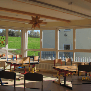 Die Schule wird mit einer Warmwasserheizung und einer Kochküche für den Hauswirtschaftsunterricht ausgestattet.